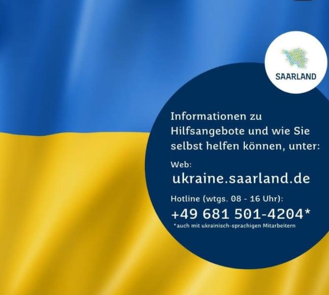 Die saarländische Landesregierung tut alles Notwendige, um schnelle und unbürokratische Hilfe zu leisten. Auf dem Sonderportal www.ukraine.saarland.de werden Informationen zu aktuellen Hilfsangeboten zusammengetragen.