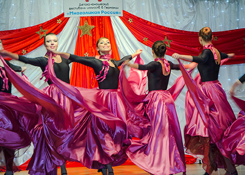 Во втором отделении бескрайние заснеженные русские просторы предстали перед глазами зрителей, когда по сцене не пошли, а поплыли сверкающие, как снег в морозный солнечный день, красавицы из Центра русско-немецкой культуры «Апплаус», г.Вупперталь. А через несколько минут в зале стало жарко от горячих танцовщиц из ансамбля «Импульс» культурно-образовательного центра КуБис, г.Вормс.