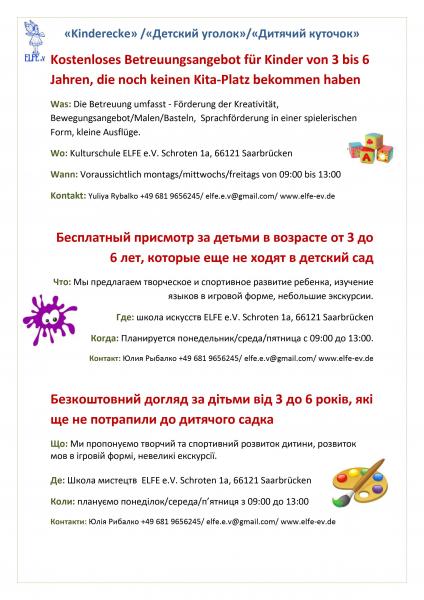 Вот и пролетели незаметно два месяца с тех пор, как при нашей школе стартовал новый проект для деток от трех до 6 лет, мини детский сад "Детский уголок". Желающих принять в нем участие было так много, что вскоре открылась и "Детская планета". Мы не только обеспечиваем присмотр за детьми, но и, как и во всех направлениях в нашей школе, развиваем и обучаем наших малышей. Мы учим немецкий язык, проводим музыкальные часы, поем, лепим, рисуем, занимаемся спортом, гуляем, ездим на экскурсии... Всего не перечислить. А для мам, чтобы они не скучали без своих малышей, мы организовали курс немецкого языка! Sprechen Sie Deutsch? И дети, и мамы уверенно отвечают: "Ja!".