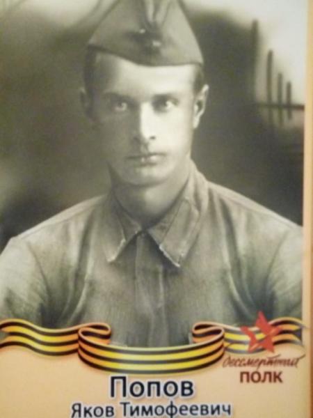 Я хочу рассказать о моём прадедушке Якове Попове, который почти всю войну провёл в лагерях и выжил благодаря своей железной воле к жизни. В августе 1941 года он был взят в плен на Белорусском фронте вместе со всем батальоном и командиром. Позже, по стечению обстоятельств, солдаты именно этого же фронта в мае 1945 года брали Берлин.