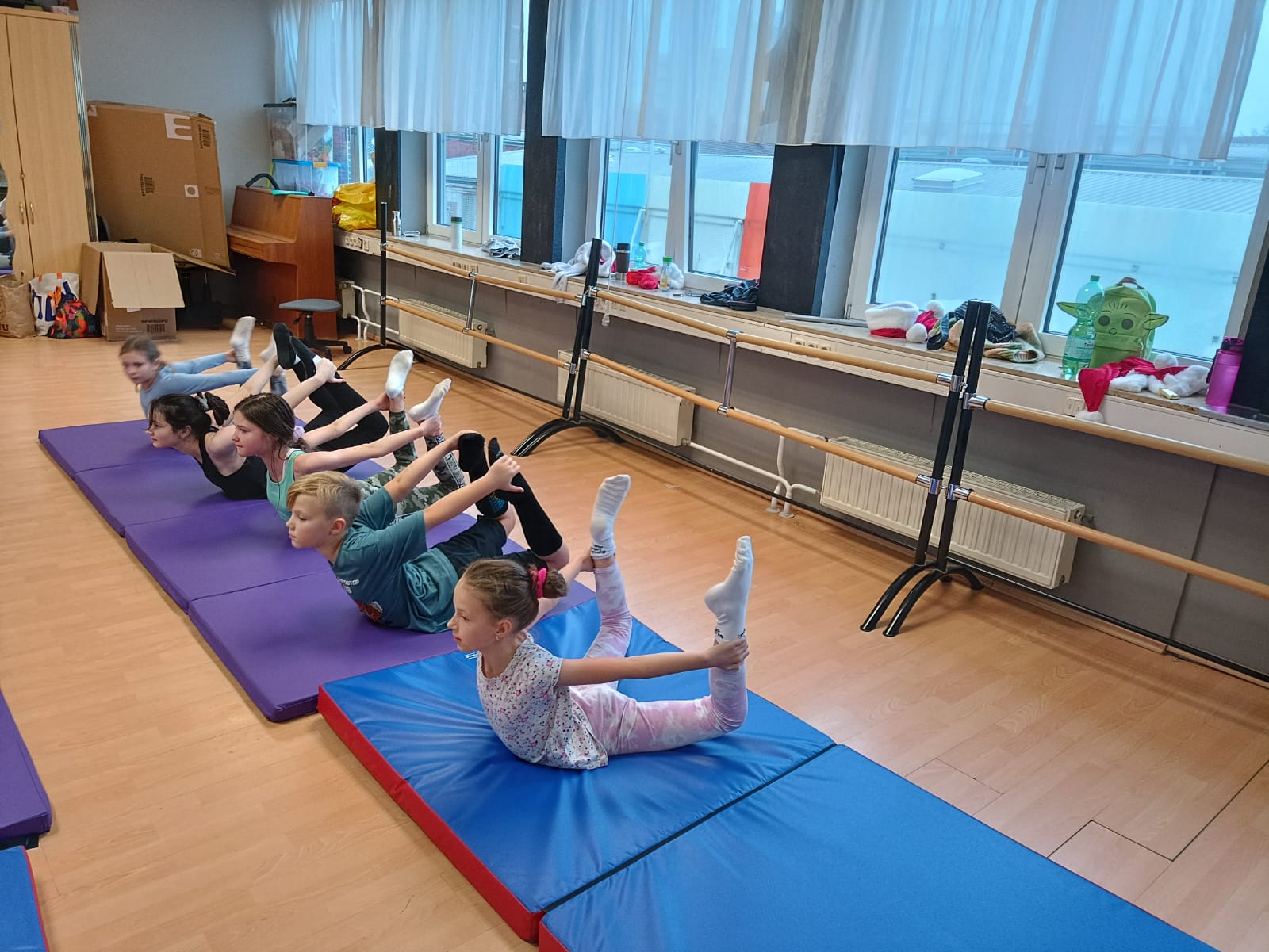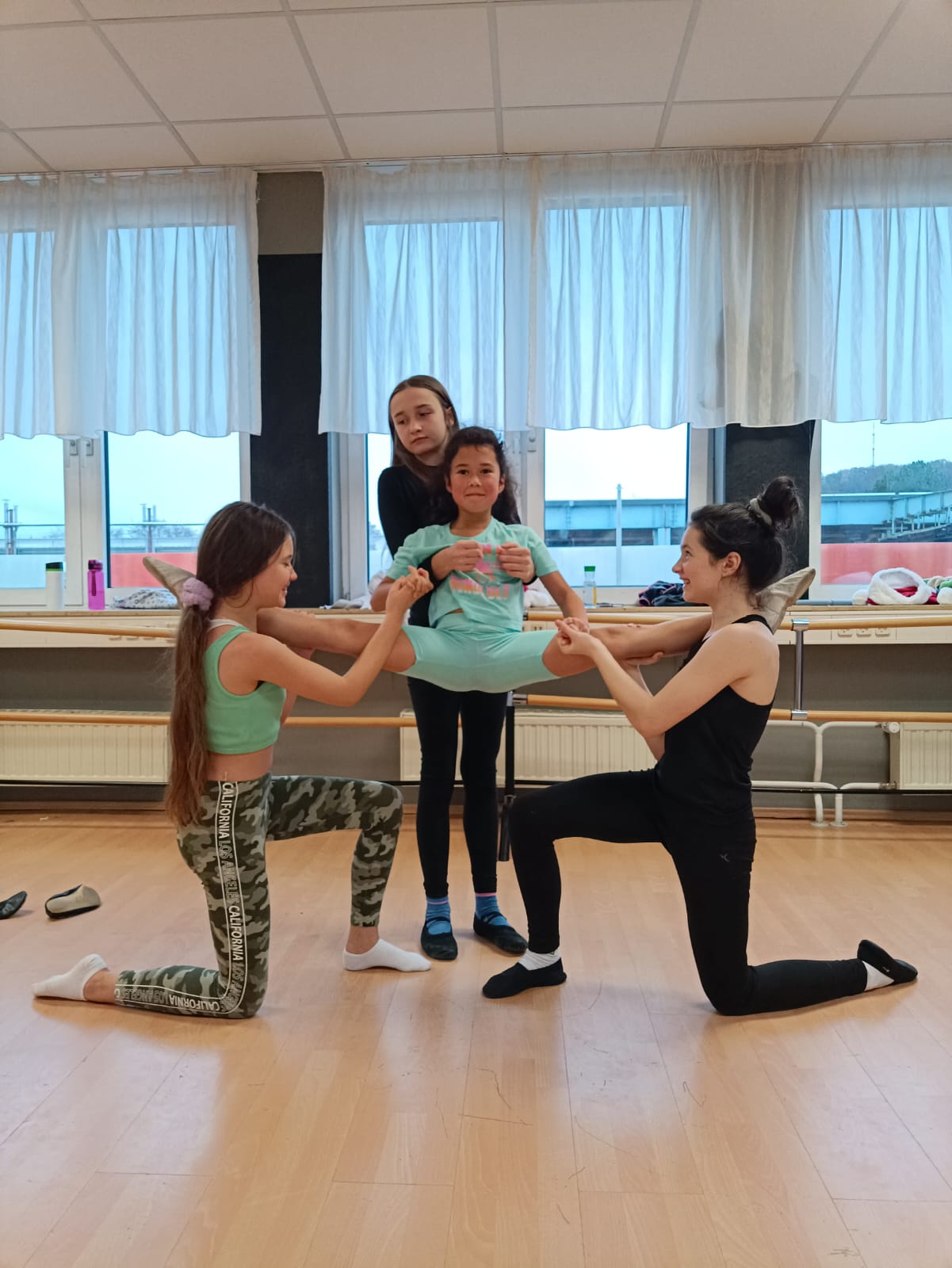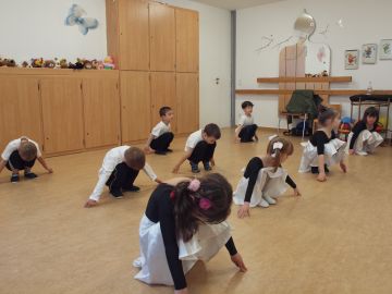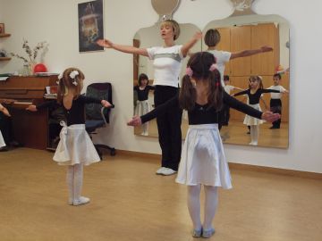 Программа занятий включает ритмику, партерную гимнастику,основы классического танца, а также освоение и постановку базовых акробатических элементов.