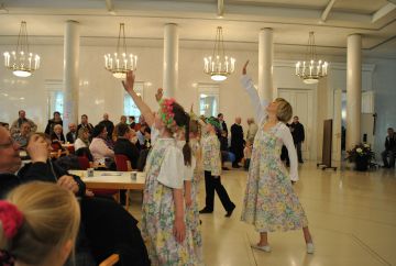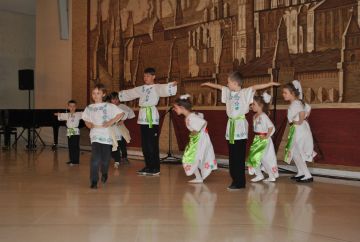 В программе обучения народный танец, изучение которого включает в себя не только физическую подготовку, развитие координации, но и знакомство с фольклором разных народов - русский, украинский , еврейский, немецкий и т.д.